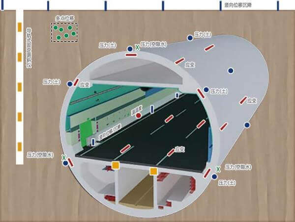 光纖分布式隧道健康監測預警系統,包含沉降監測、襯砌環向應變監測、襯砌變形縫位移監測、襯徹掉塊監測、泥石流危巖落石災害監測、非法入侵安防監測、隧道頂部非法鉆孔挖掘施工侵害監測、滲漏水監測、火災監測、有害氣體監測、監測數據展示等子系統。